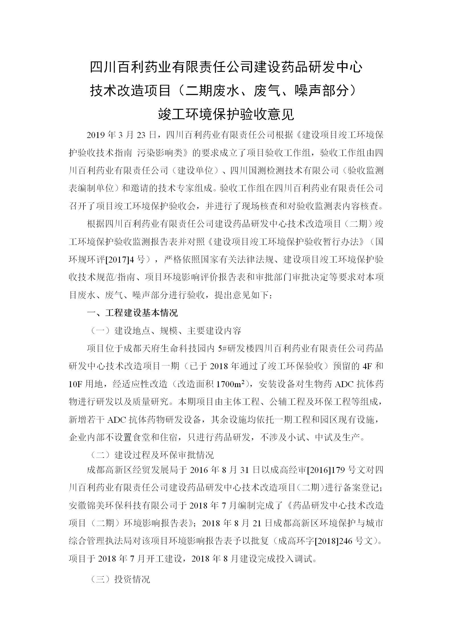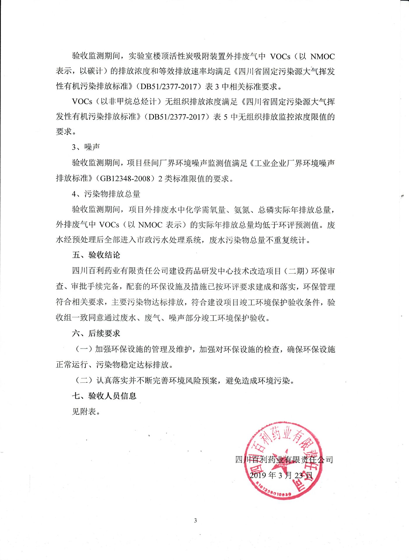 根据《国务院关于建设项目竣工环境保护管理条例的决定》以及环保部《建设项目竣工环境保护验收暂行办法》的公告(国环规环评[2017]4号)现将《四川沈阳吕建瑜伽与健身中心有限公司有限责任公司药品研发中心技术改造项目(二期)竣工环保验收监测报告》及验收意见公示如下: